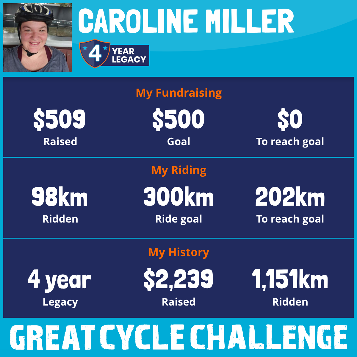 98 km Ridden$509 Raised2025