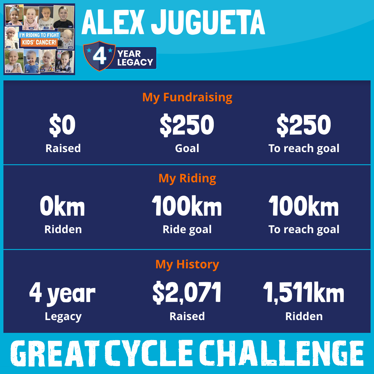 I am riding 100 km to fight kids' cancer and save little lives. Please sponsor me to support my challenge!