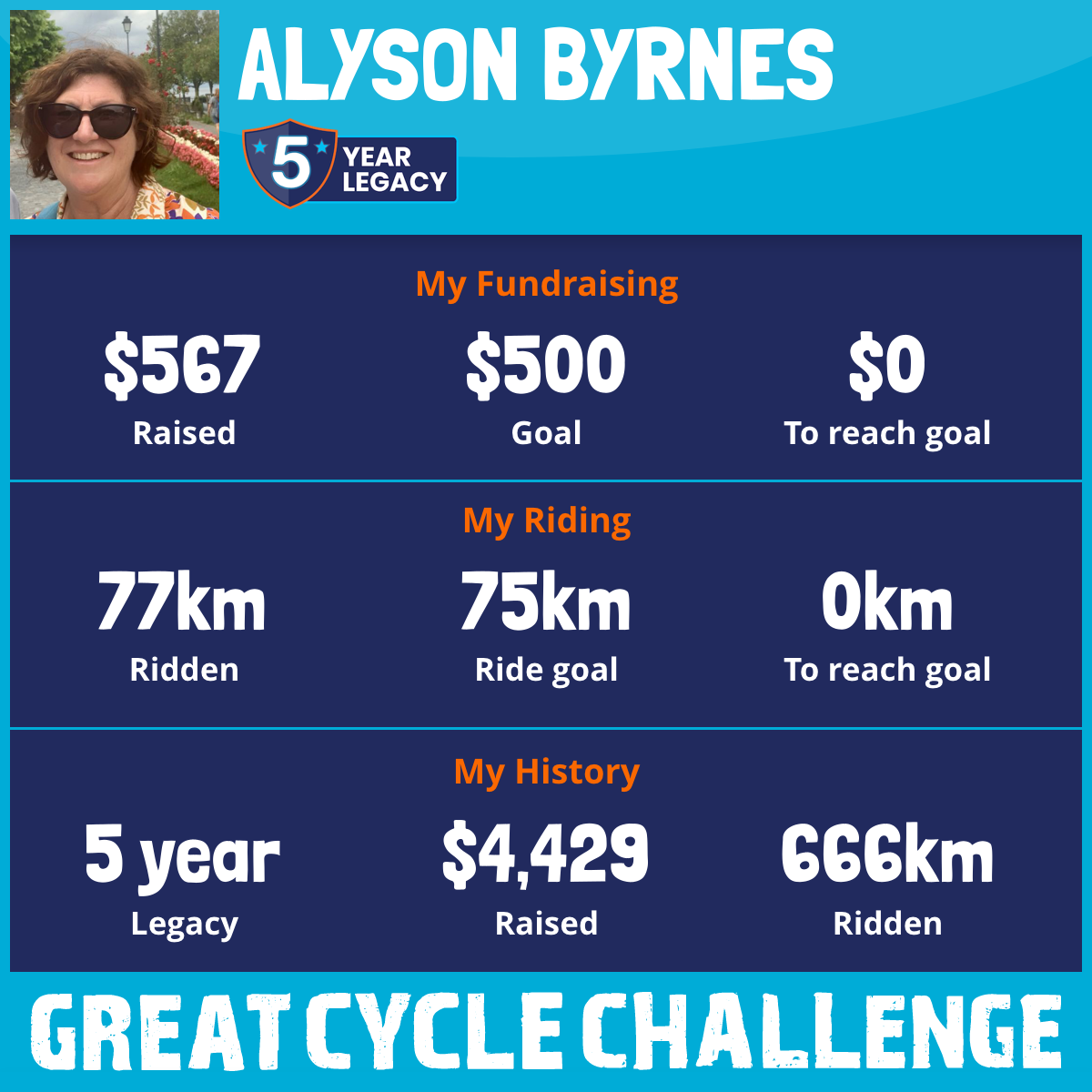 169 km Ridden$935 Raised2023