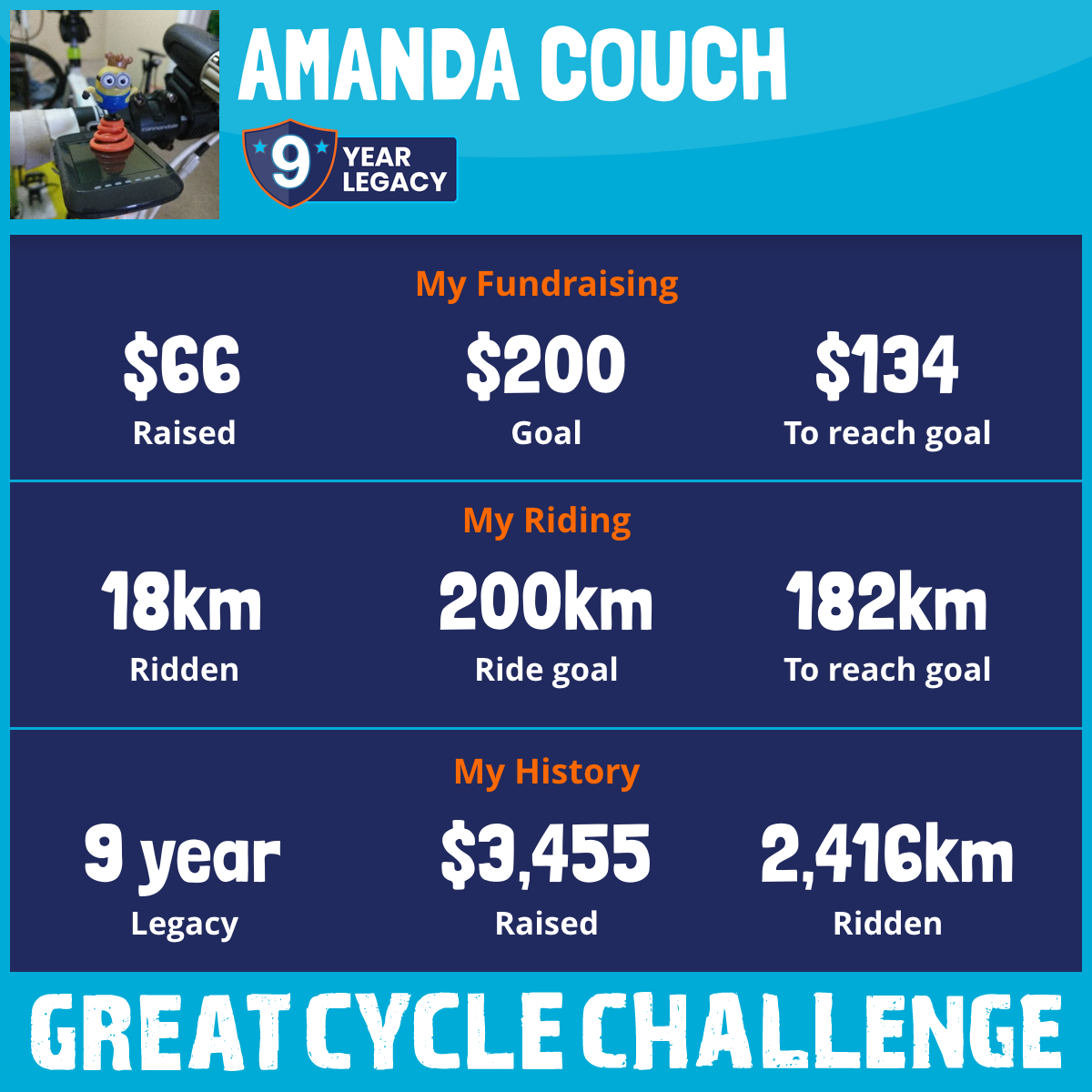 232 km Ridden$50 Raised2018