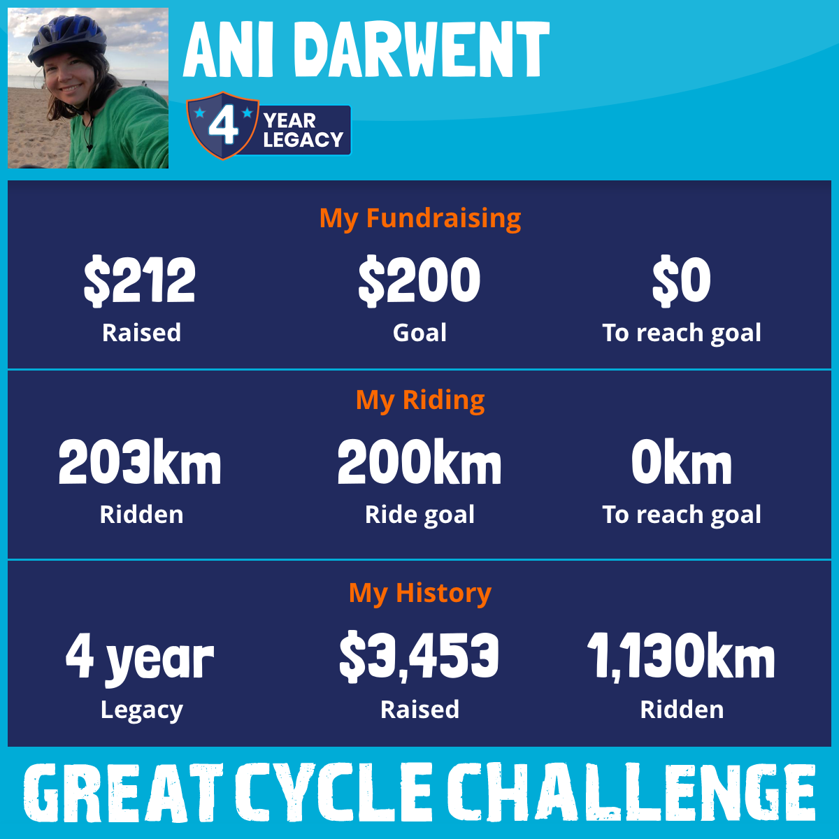 203 km Ridden$212 Raised2025