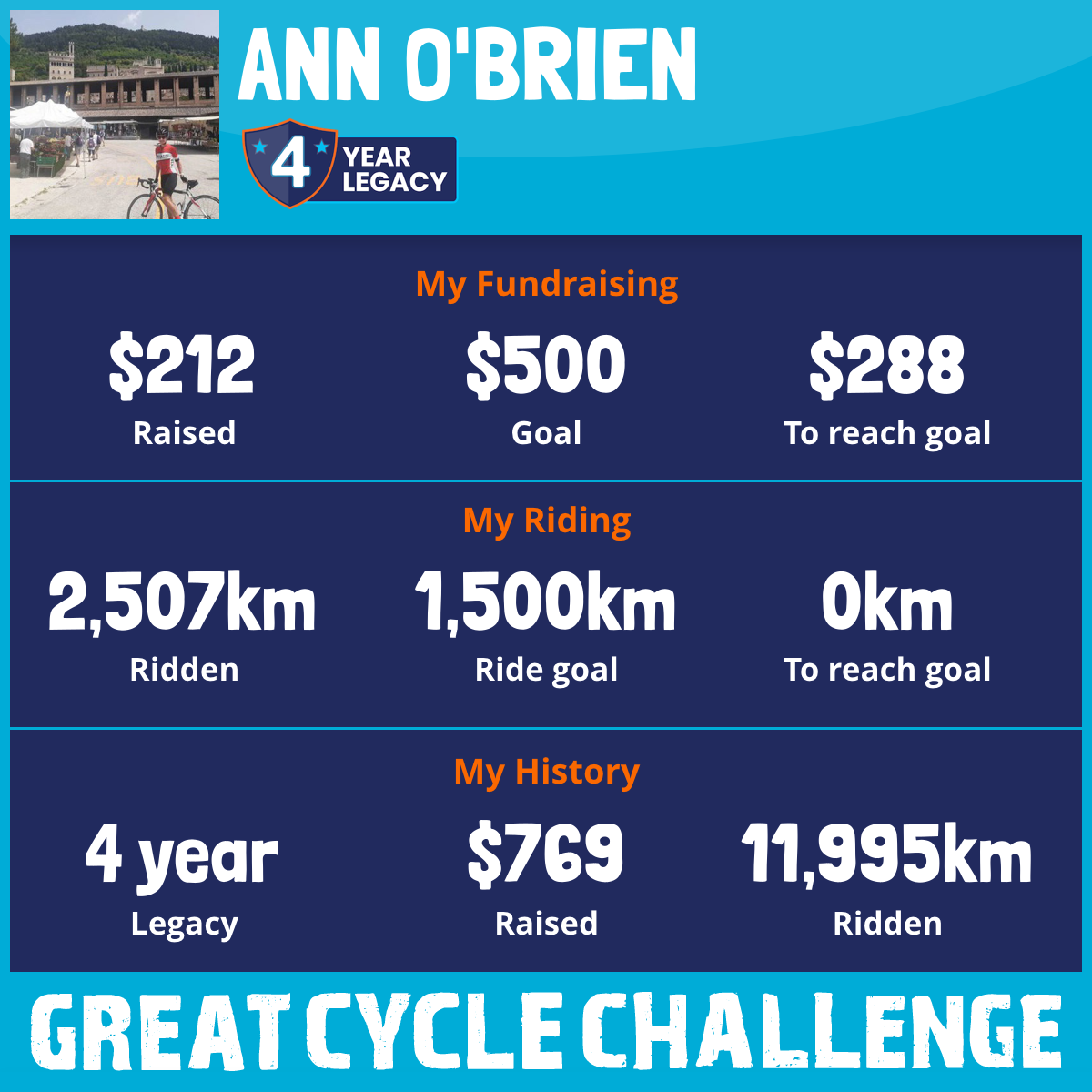 2,507 km Ridden$212 Raised2025