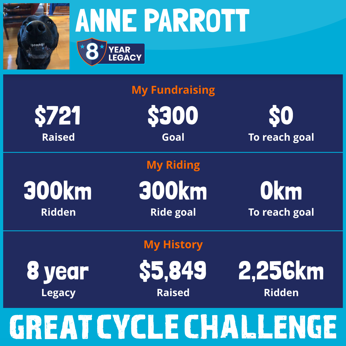 I am riding 300 km in memory of Judy Walker. Please sponsor me and support my challenge to fight kids' cancer and save little lives.
