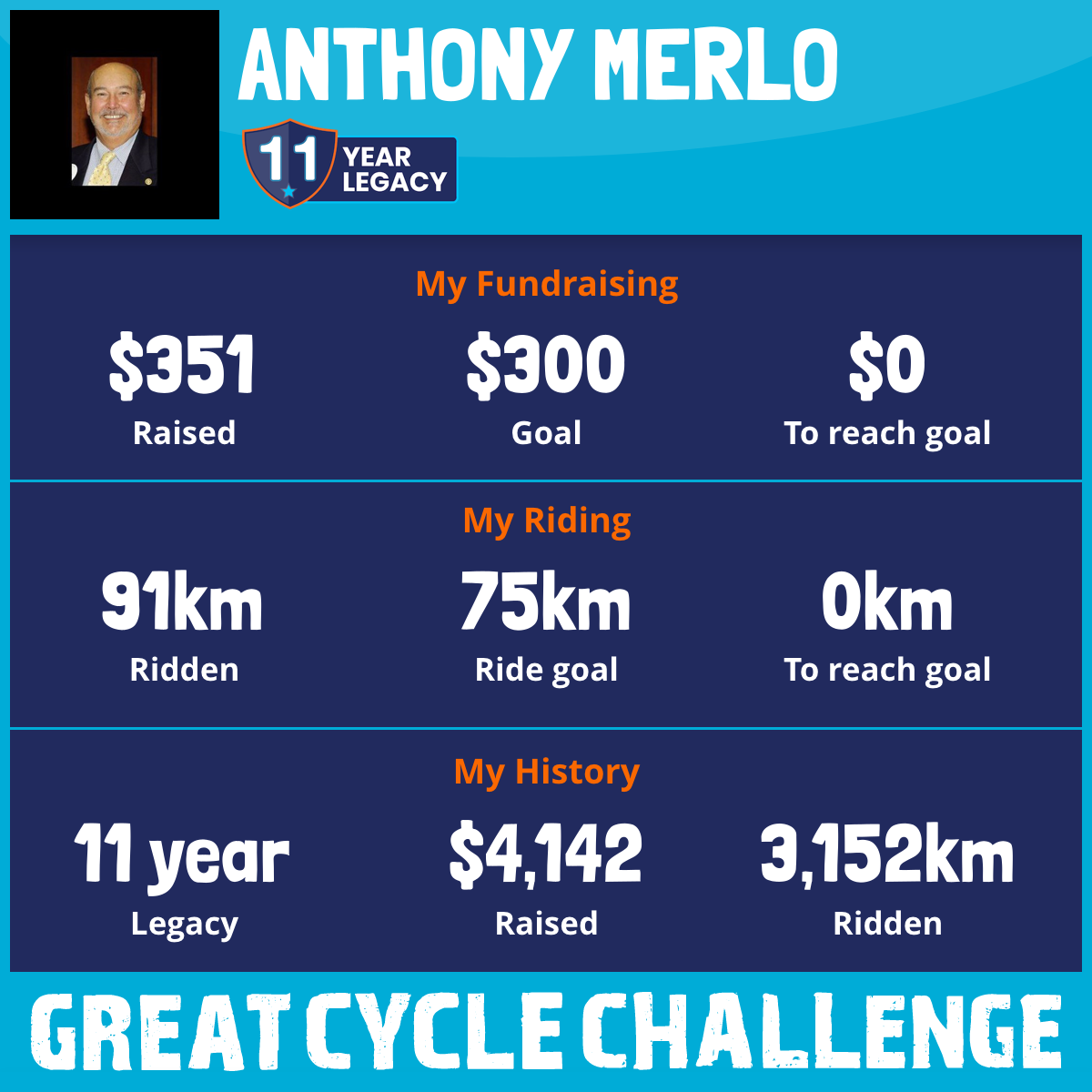 And so I am riding and raising funds to support the Children's Medical Research Institute to continue their work into the prevention, diagnosis, treatment and finding a cure for childhood cancer.
