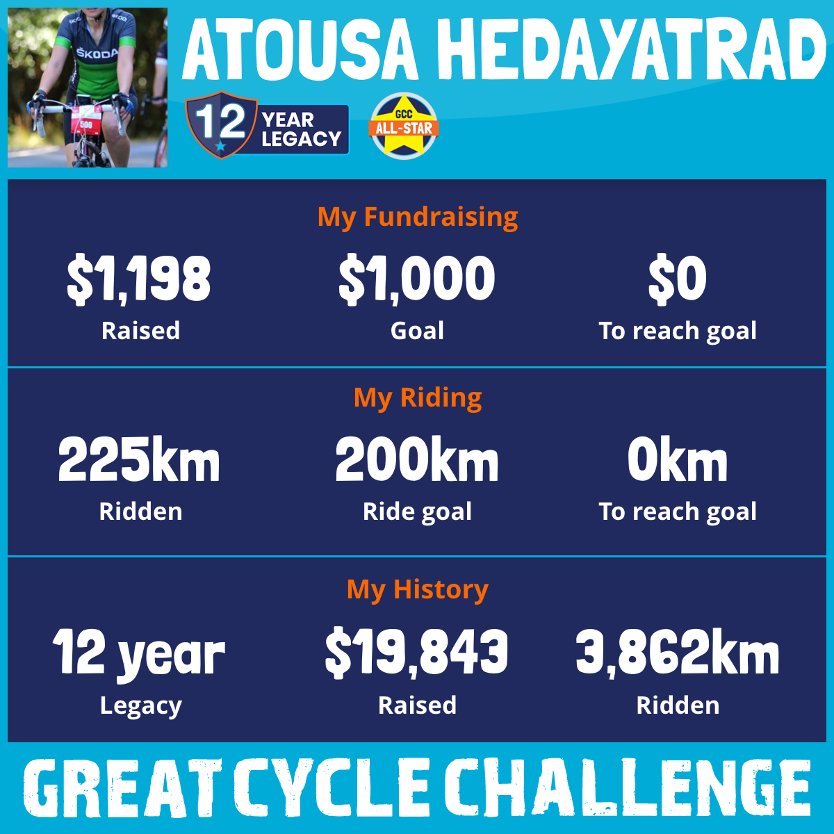 And so I am riding and raising funds to support the Children's Medical Research Institute to continue their work into the prevention, diagnosis, treatment and finding a cure for childhood cancer.