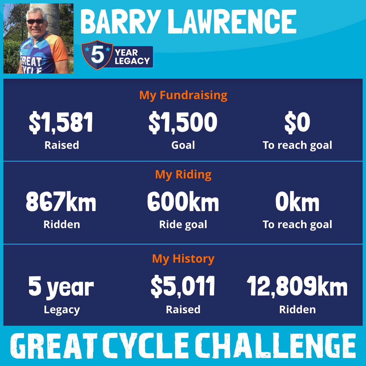 30.5 km ride - Great Cycle Challenge raising funds for cancer research and treatment - Saturday, October 25, 2025