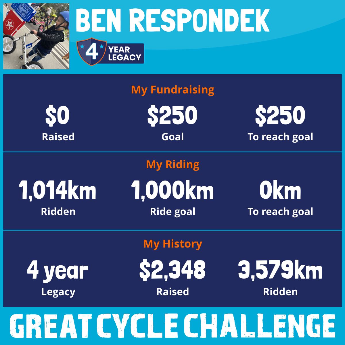 1,063 km Ridden$1,187 Raised2023