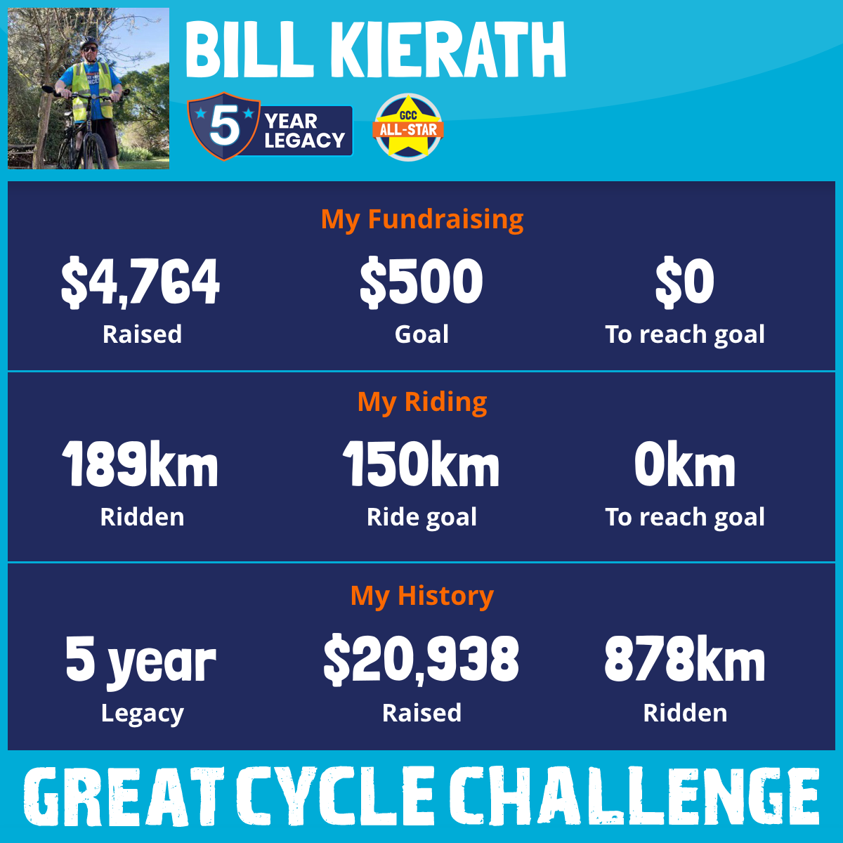 189 km Ridden$4,764 Raised2025