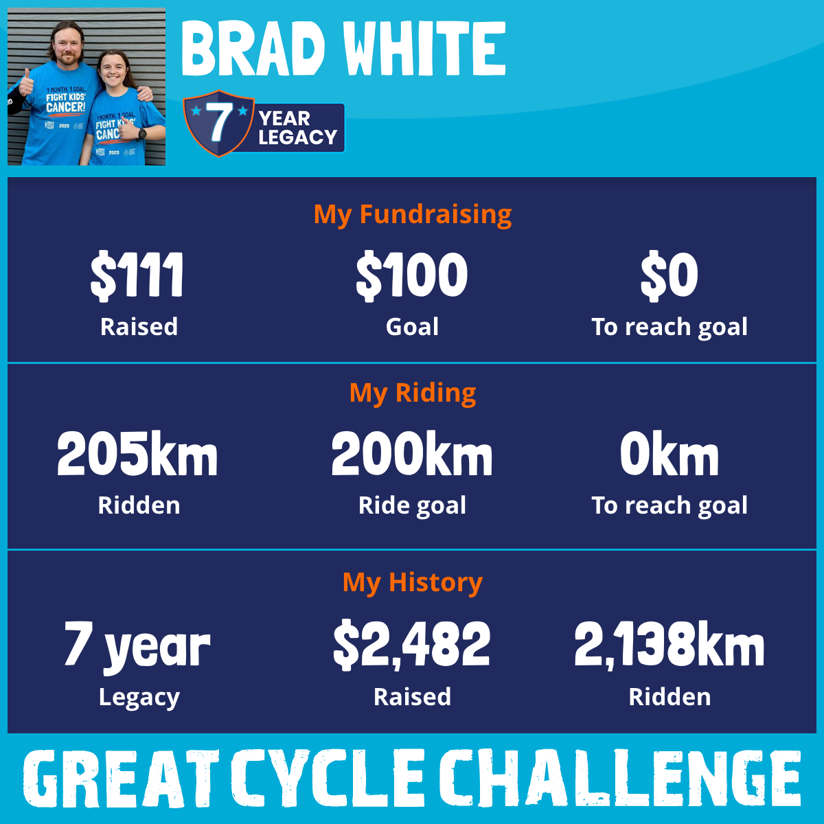And so I am riding and raising funds to support the Children's Medical Research Institute to continue their work into the prevention, diagnosis, treatment and finding a cure for childhood cancer.