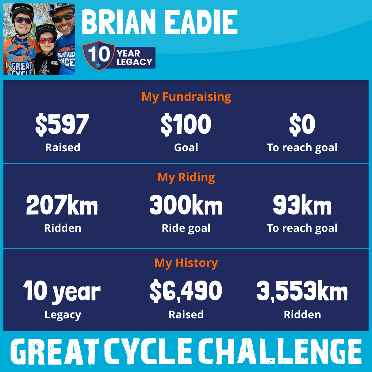 And so I am riding and raising funds to support the Children's Medical Research Institute to continue their work into the prevention, diagnosis, treatment and finding a cure for childhood cancer.