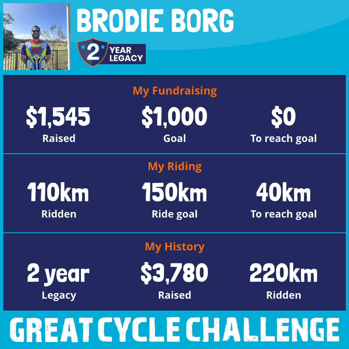 110 km Ridden$1,545 Raised2026