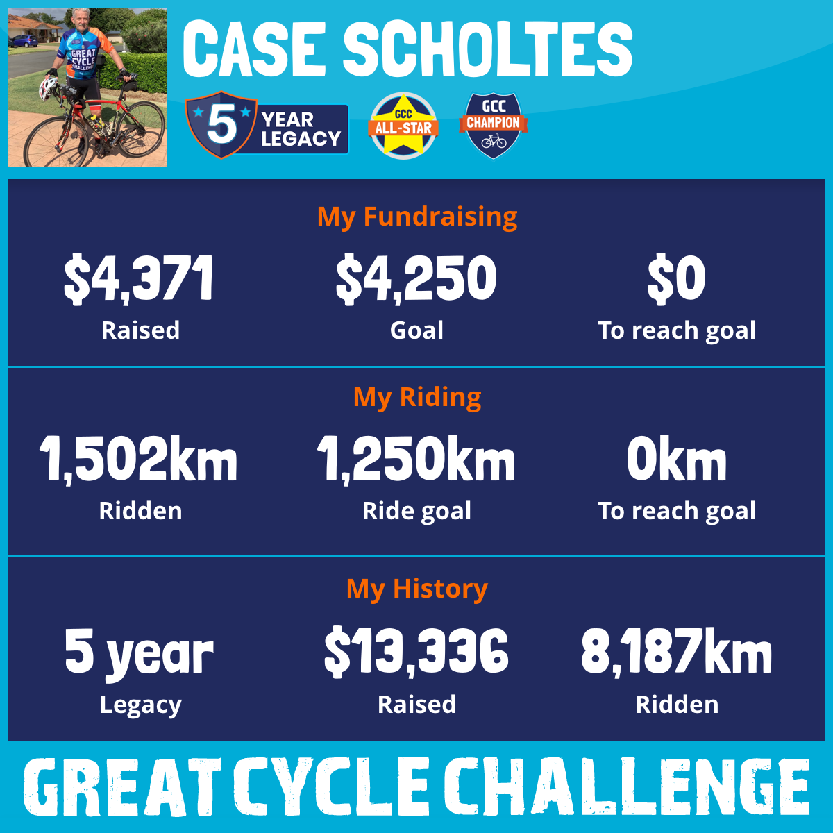 In memory of Darren Timms (pictured) (RIP 2024) and John Smallwood (RIP 2019), as well as Friends, Family and Associates effected by Cancer. I am again participating in the October Great Cycle Challenge riding for Children's Cancer Research. Please support this important initiative by donating to the cause.