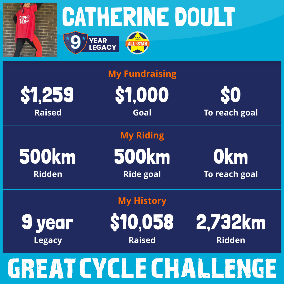 500 km Ridden$1,259 Raised2025