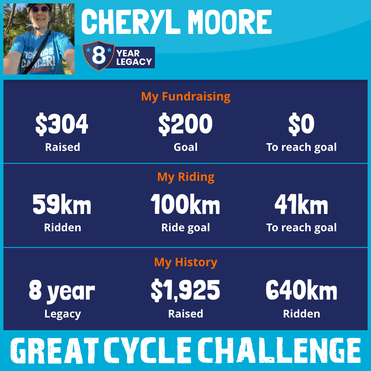 And so I am riding and raising funds to support the Children's Medical Research Institute to continue their work into the prevention, diagnosis, treatment and finding a cure for childhood cancer.