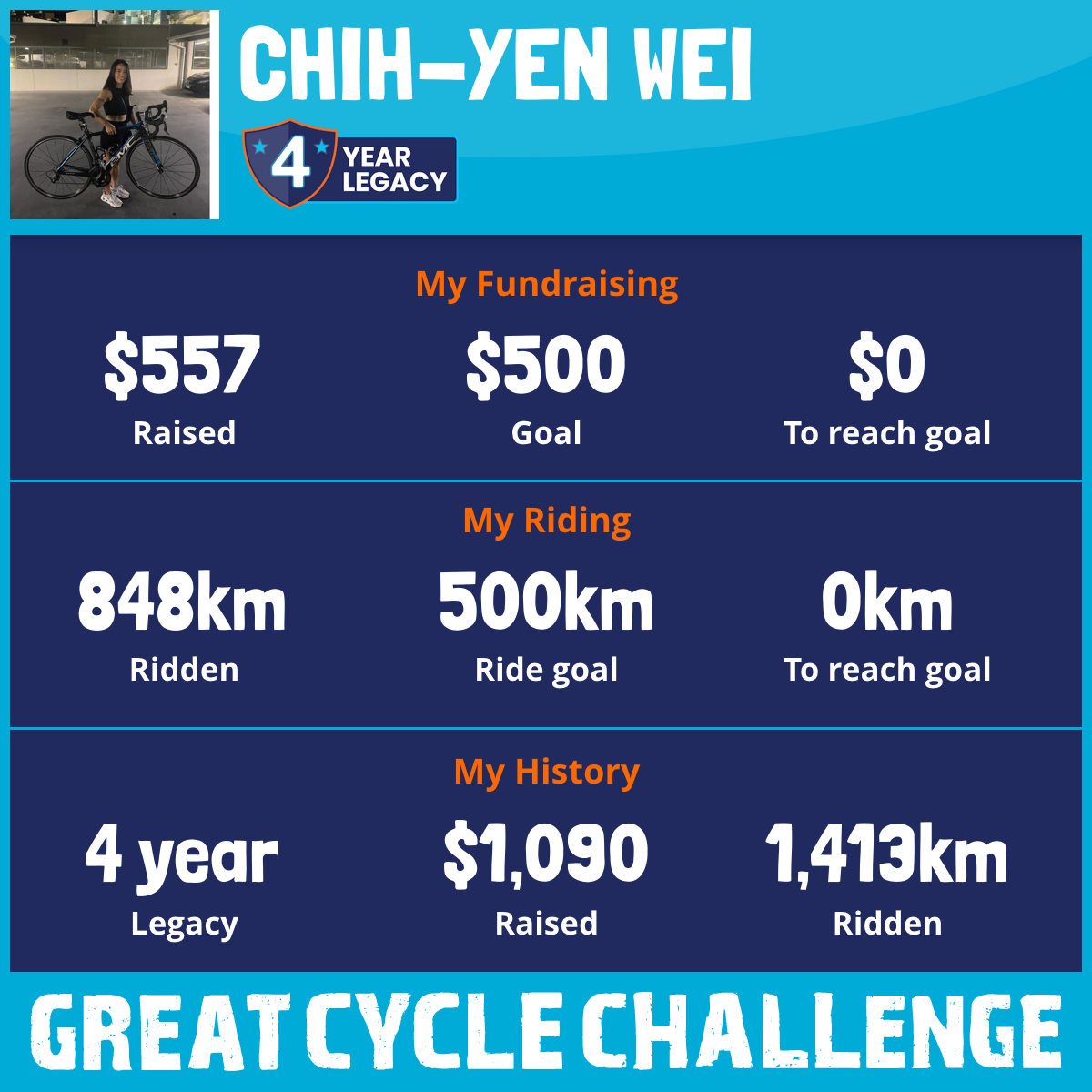 And so I am riding and raising funds to support the Children's Medical Research Institute to continue their work into the prevention, diagnosis, treatment and finding a cure for childhood cancer.