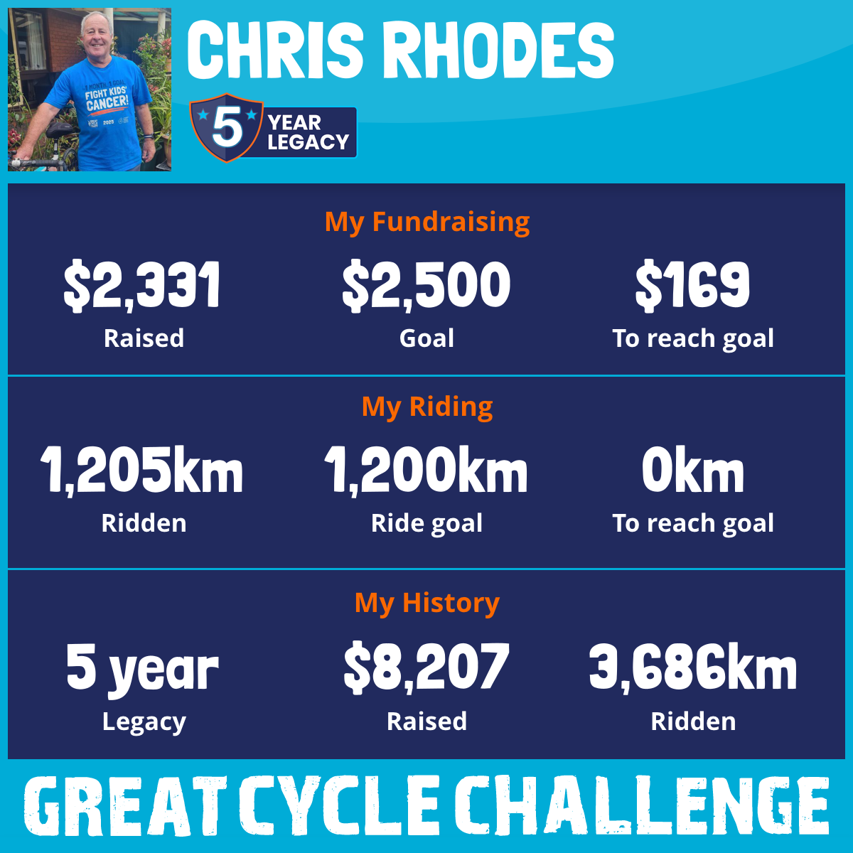 And so I am riding and encouraging my friends and relatives to generously donate funds to support the Children's Medical Research Institute to continue their work into the prevention, diagnosis, treatment and finding a cure for childhood cancer.