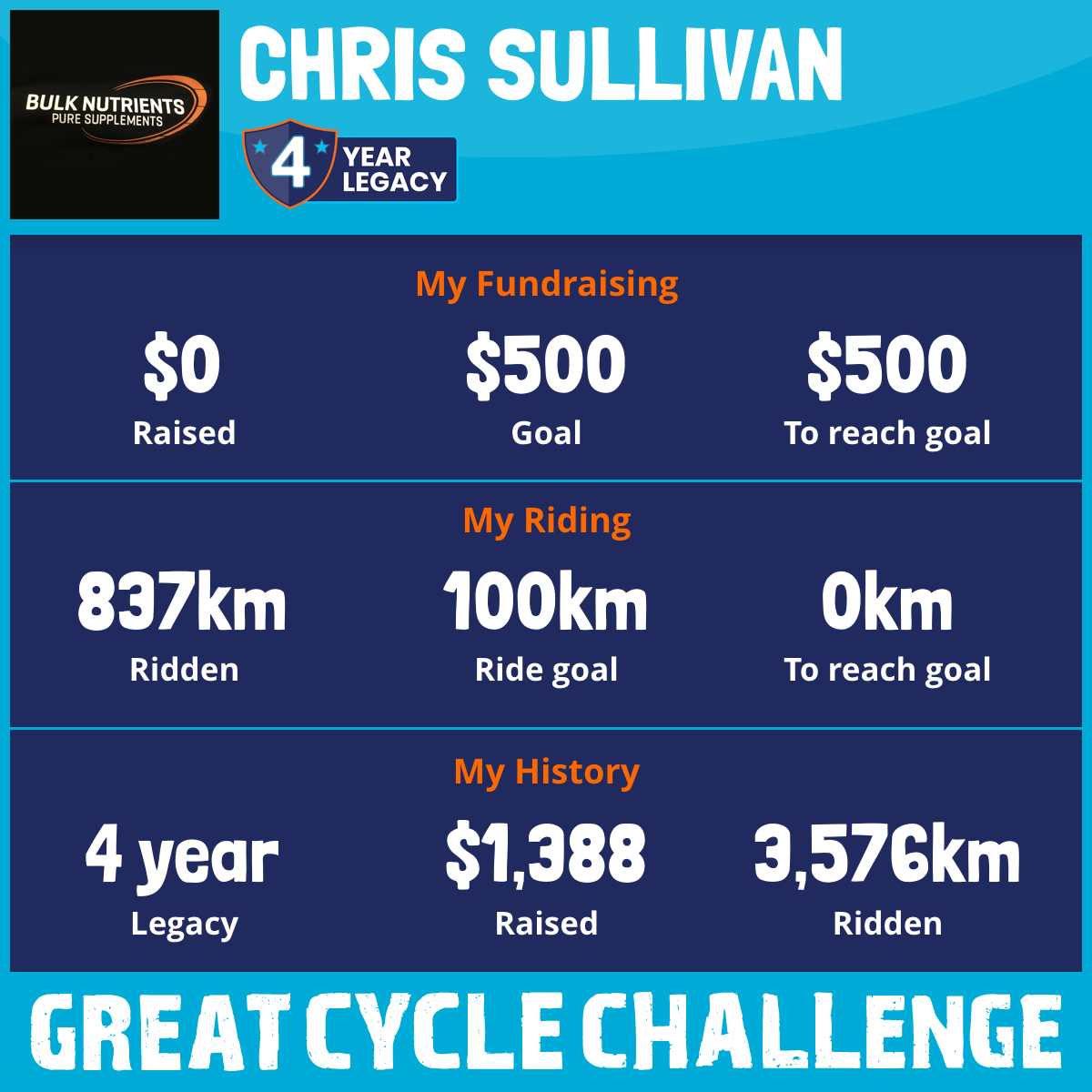 1,326 km Ridden$1,388 Raised2019