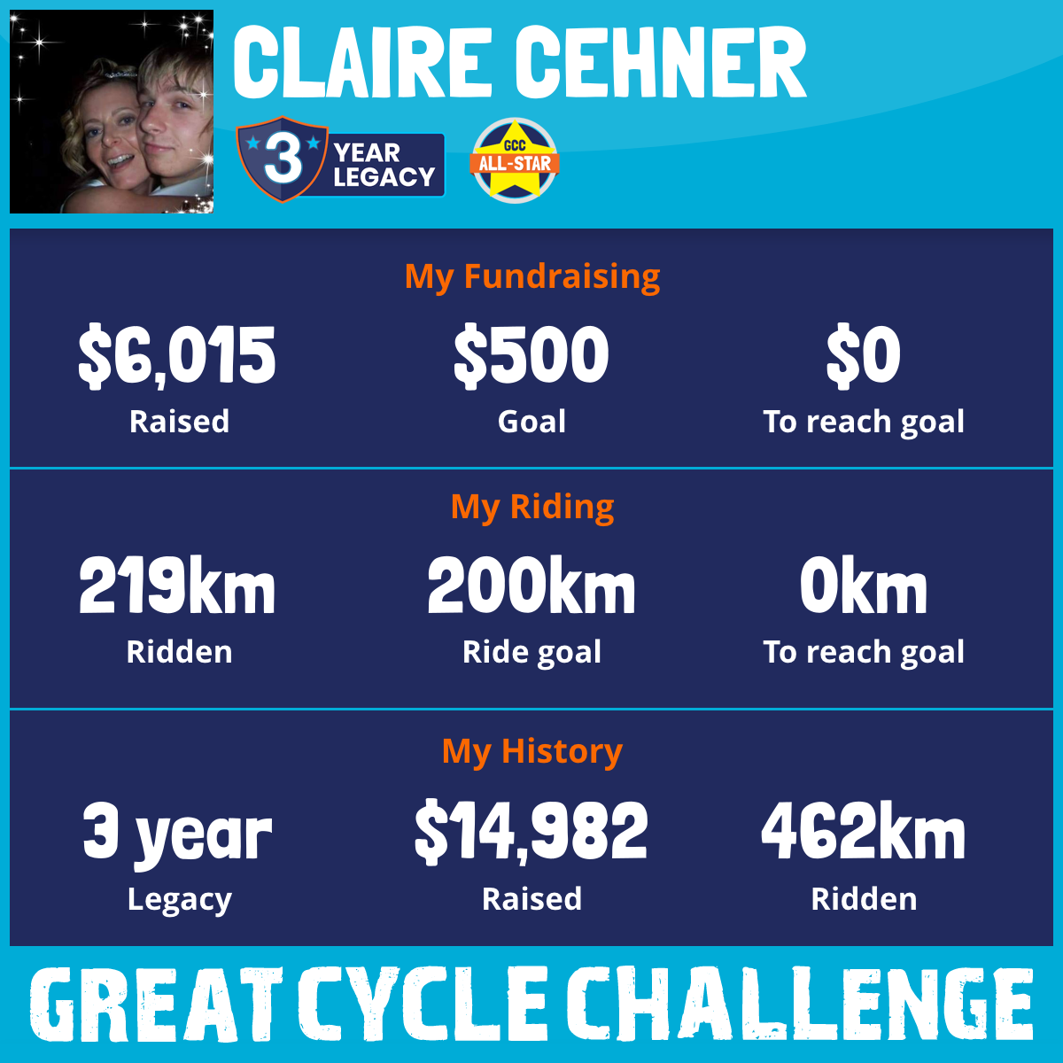219 km Ridden$6,015 Raised2026