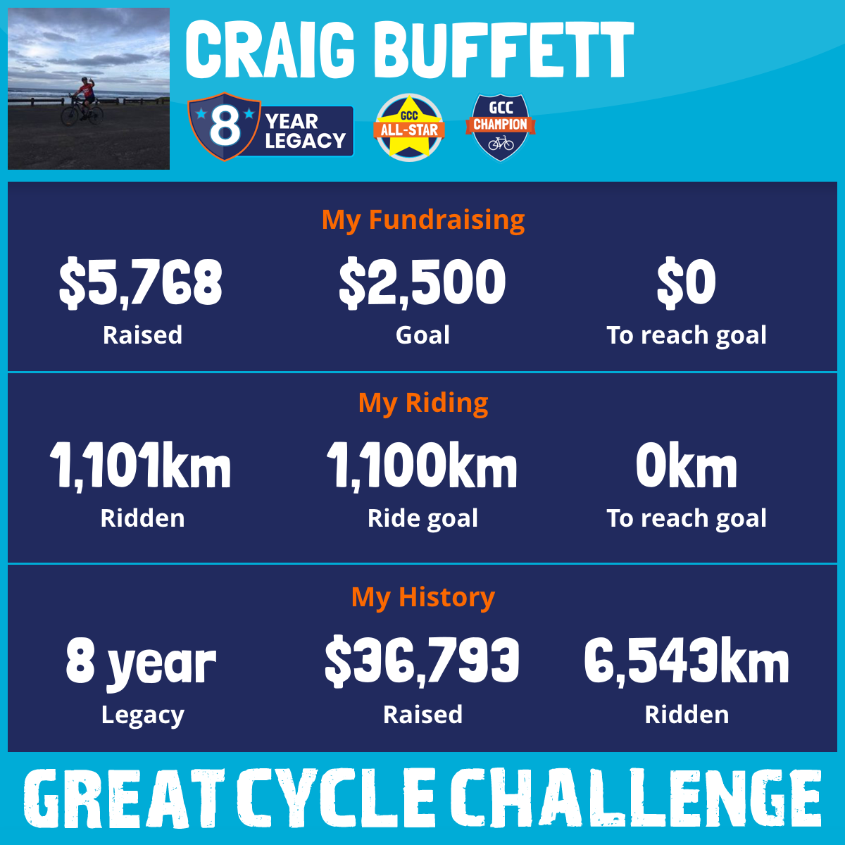 1,101 km Ridden$5,768 Raised2026