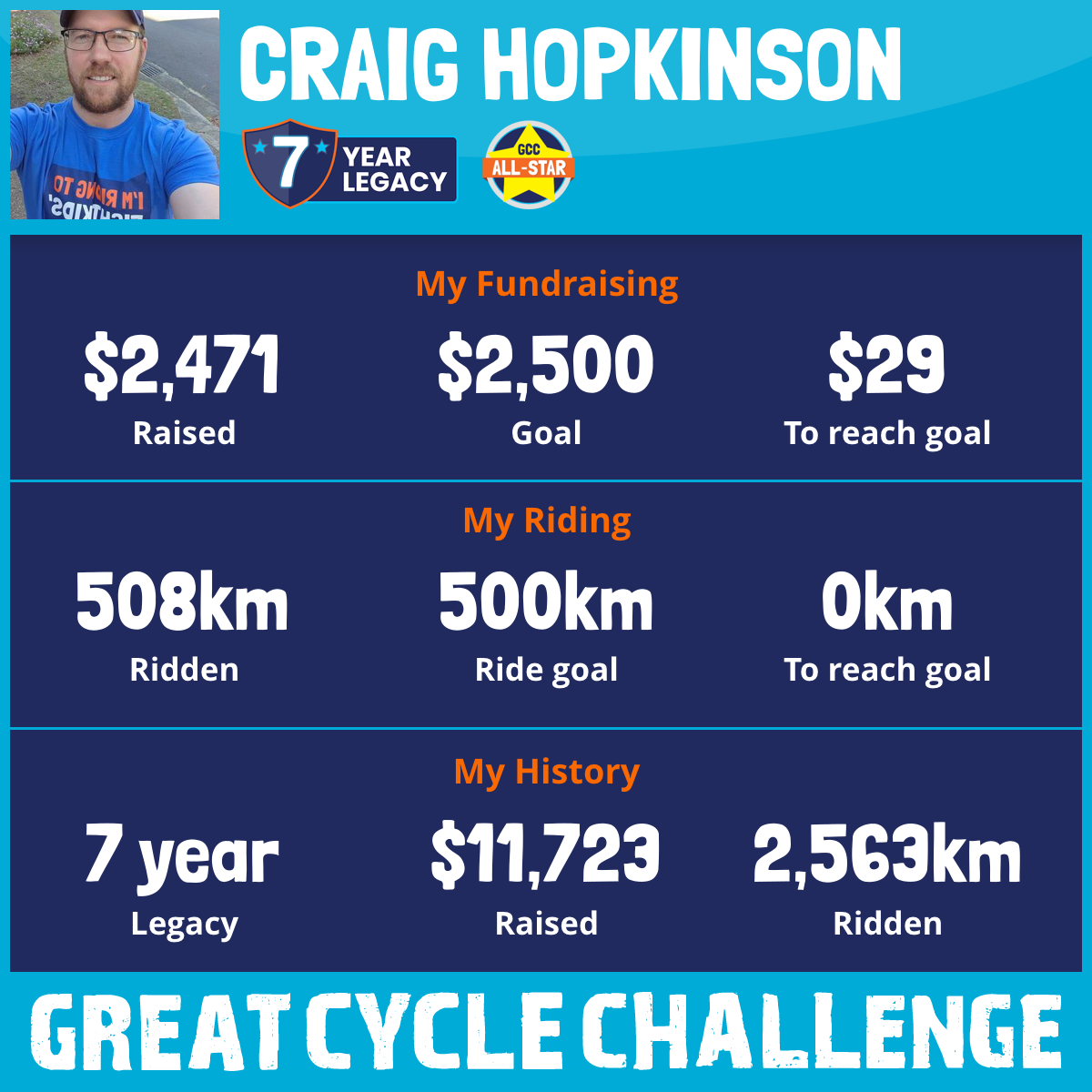 And so I am riding and raising funds to support the Children's Medical Research Institute to continue their work into the prevention, diagnosis, treatment and finding a cure for childhood cancer.