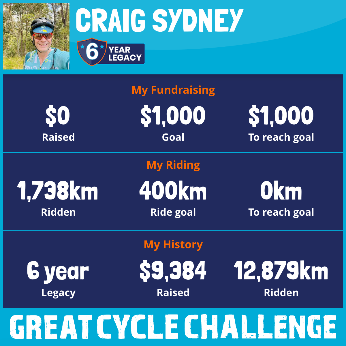 1,815 km Ridden$4,760 Raised2020