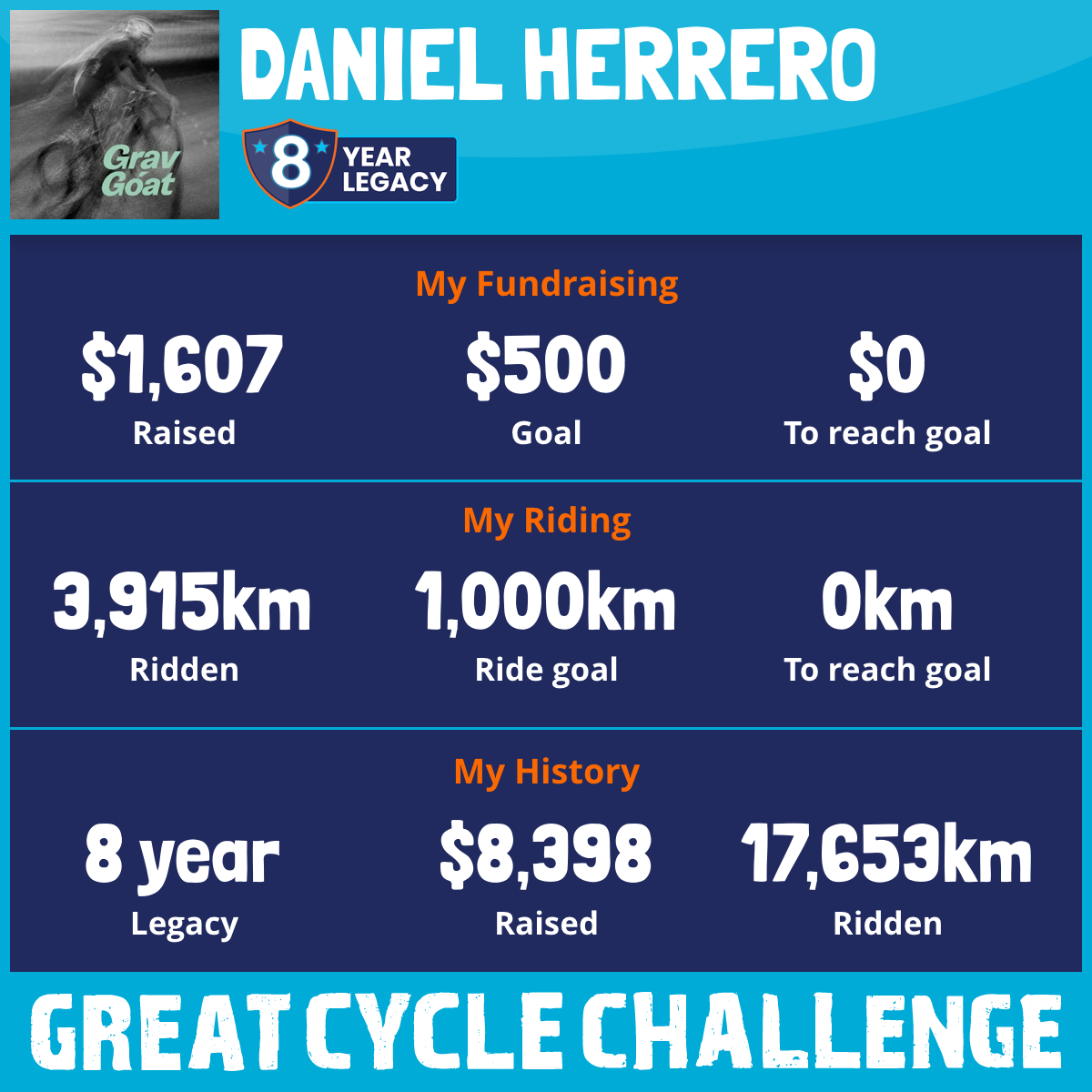 3,898 km Ridden$1,607 Raised2025
