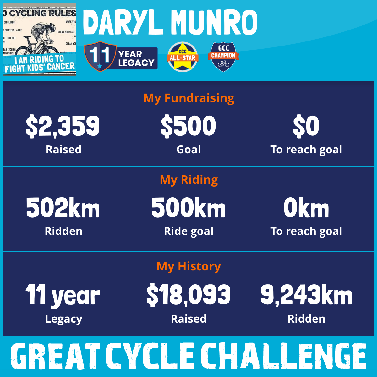 502 km Ridden$2,359 Raised2025