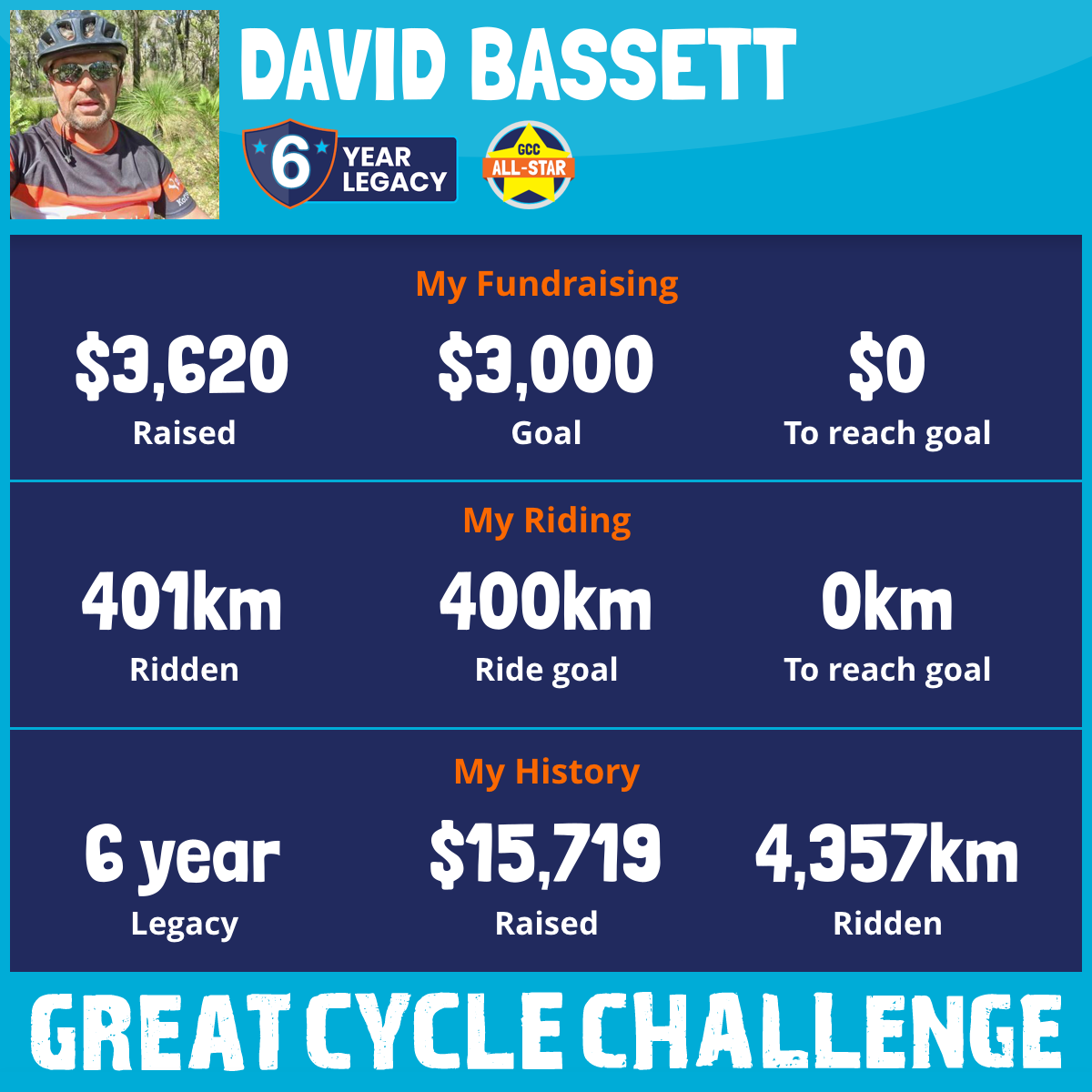 401 km Ridden$3,620 Raised2025