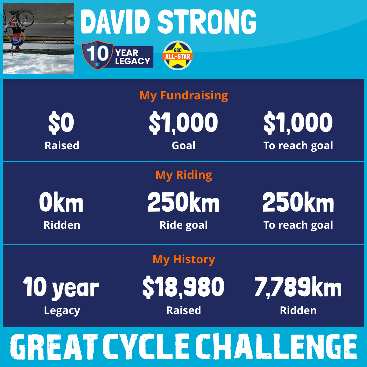 I am only riding the last three weeks this year due to a reduced travel commitment. However, my commitment remains to supporting this institution to find a cure for kid's cancer, so on the bike and pedalling I will be.