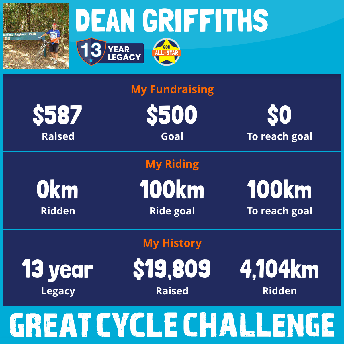 And so I am riding and raising funds to support the Children's Medical Research Institute to continue their work into the prevention, diagnosis, treatment and finding a cure for childhood cancer.
