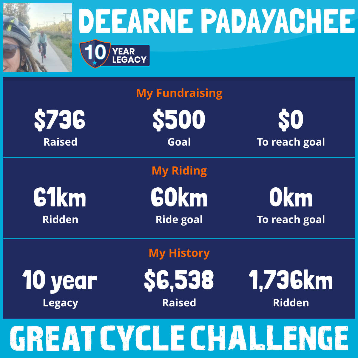 And so I am riding and raising funds to support the Children's Medical Research Institute to continue their work into the prevention, diagnosis, treatment and finding a cure for childhood cancer.