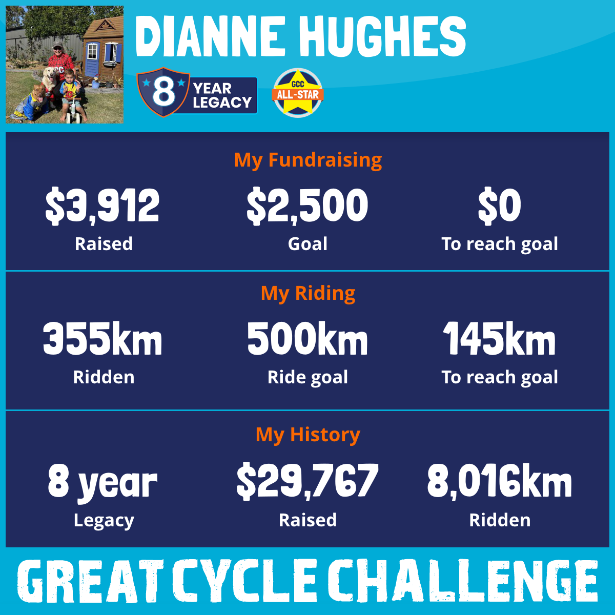 And so I am riding and raising funds to support the Children's Medical Research Institute to continue their work into the prevention, diagnosis, treatment and finding a cure for childhood cancer.