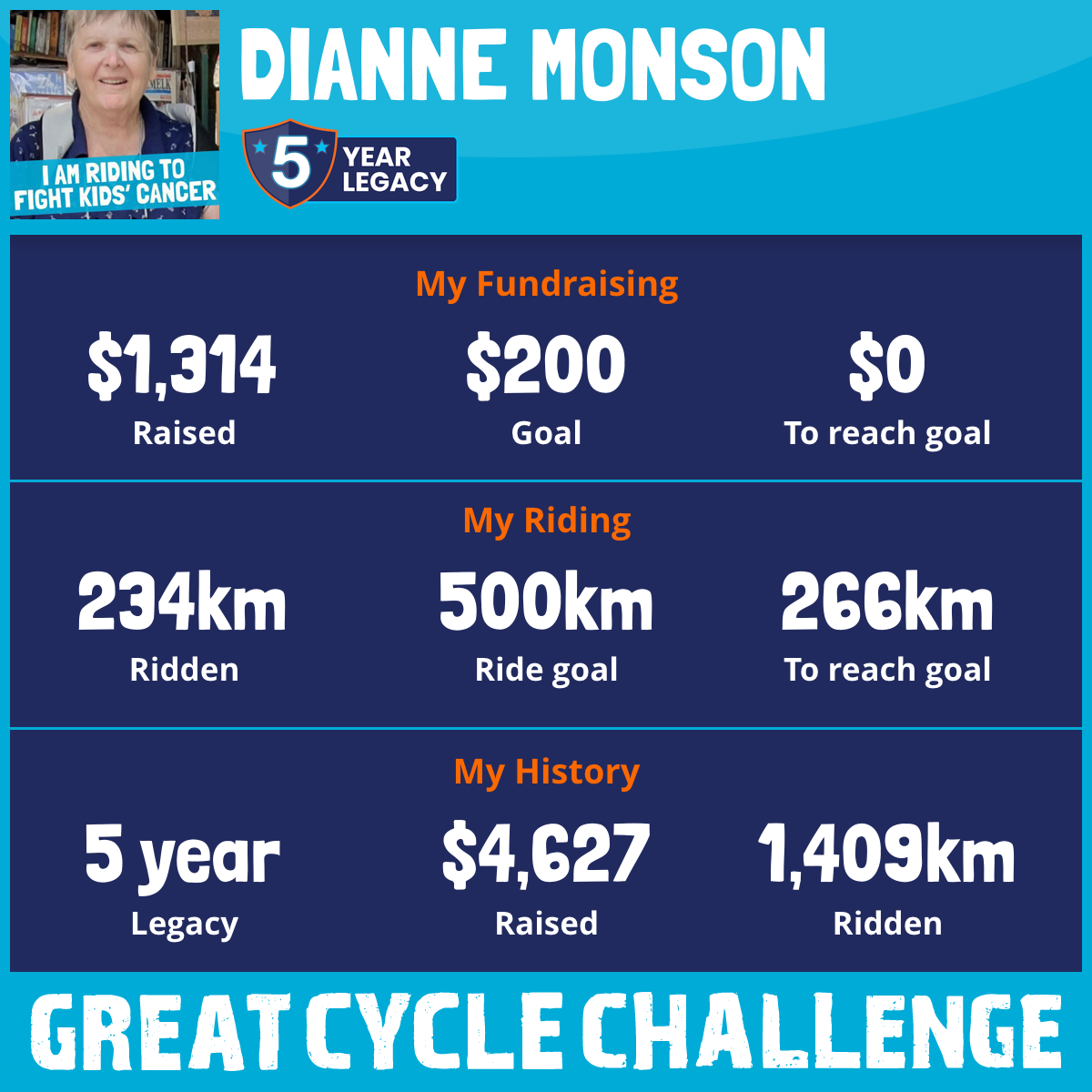 And so I am riding and raising funds to support the Children's Medical Research Institute to continue their work into the prevention, diagnosis, treatment and finding a cure for childhood cancer.