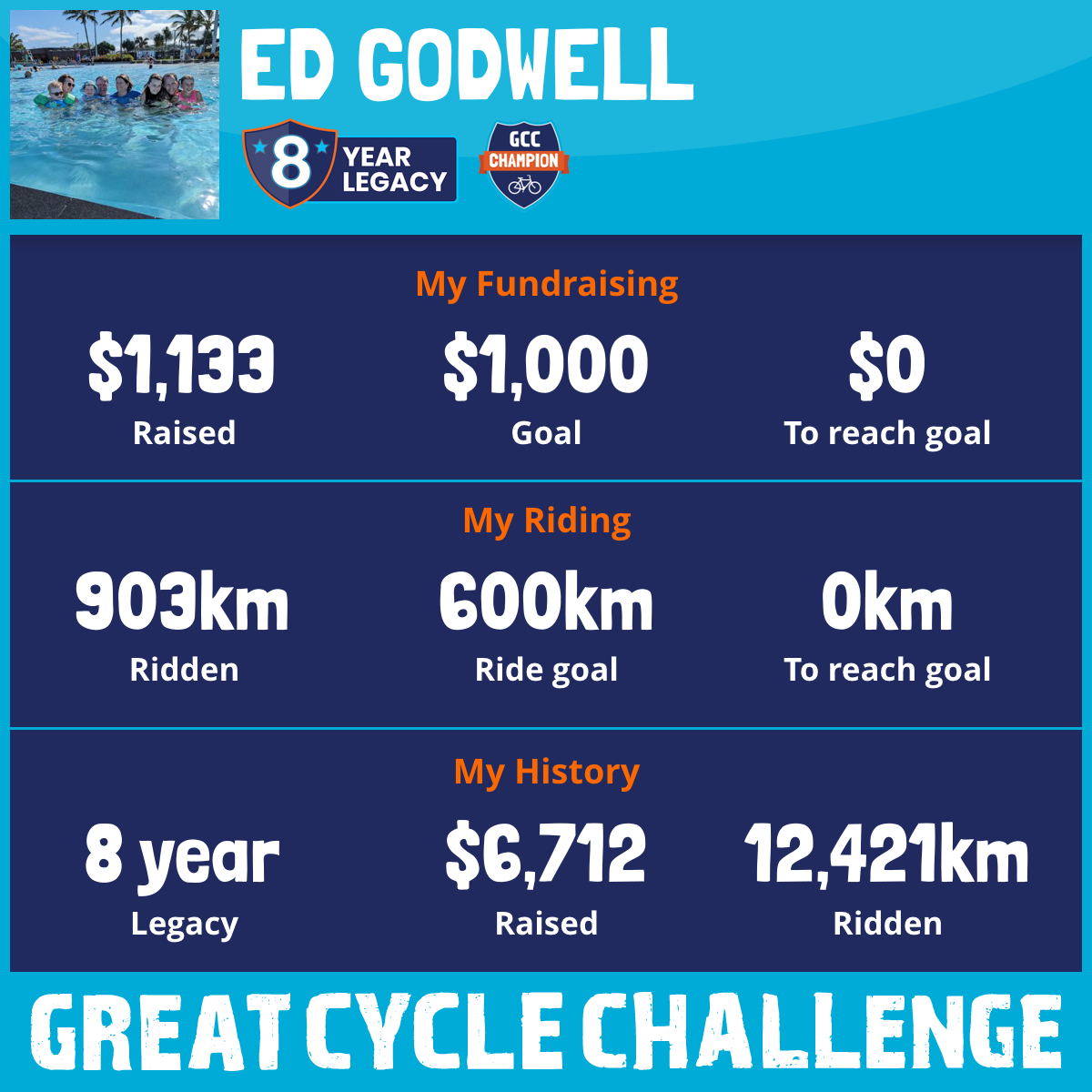 And so I am riding and raising funds to support the Children's Medical Research Institute to continue their work into the prevention, diagnosis, treatment and finding a cure for childhood cancer.