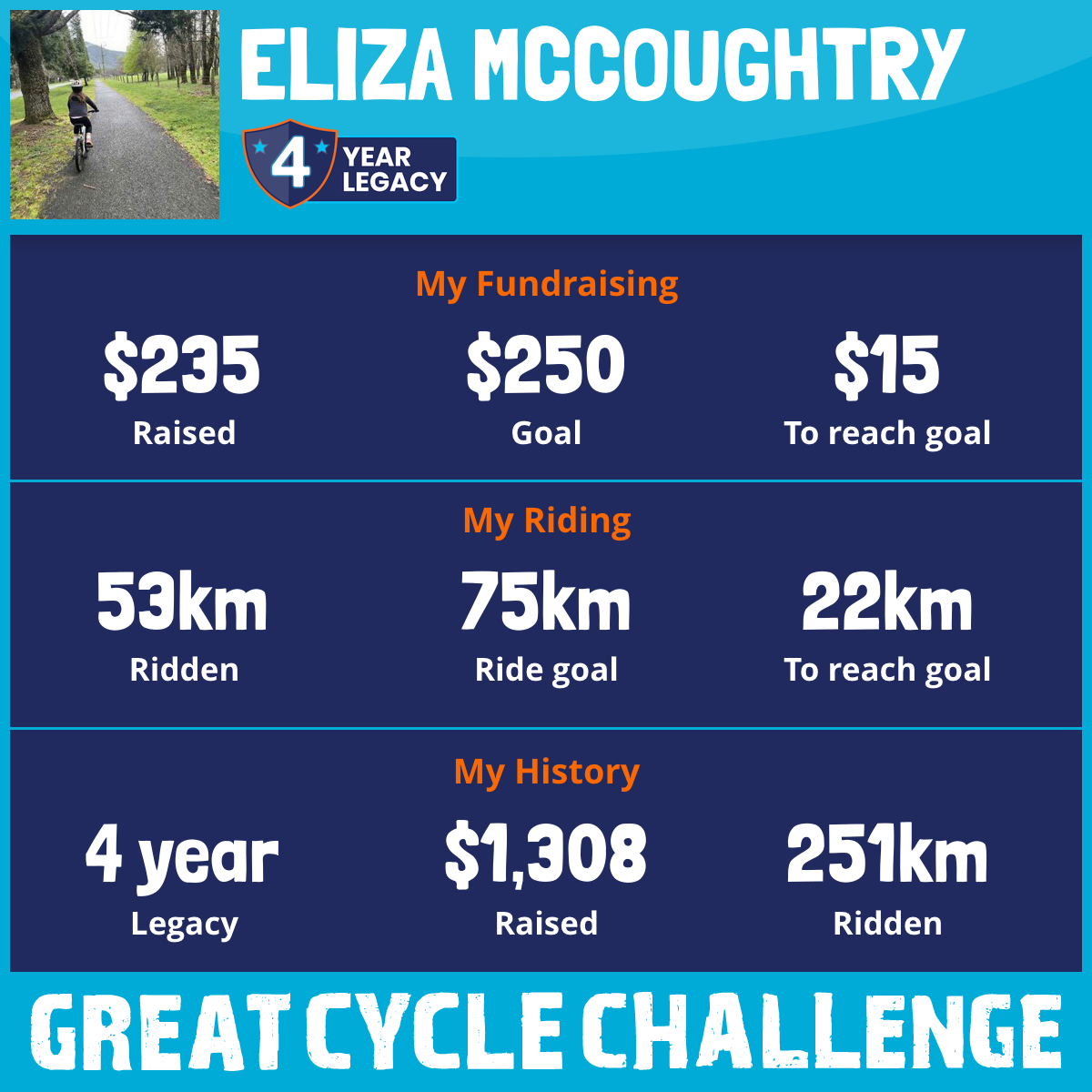 And so I am riding and raising funds to support the Children's Medical Research Institute to continue their work into the prevention, diagnosis, treatment and finding a cure for childhood cancer.