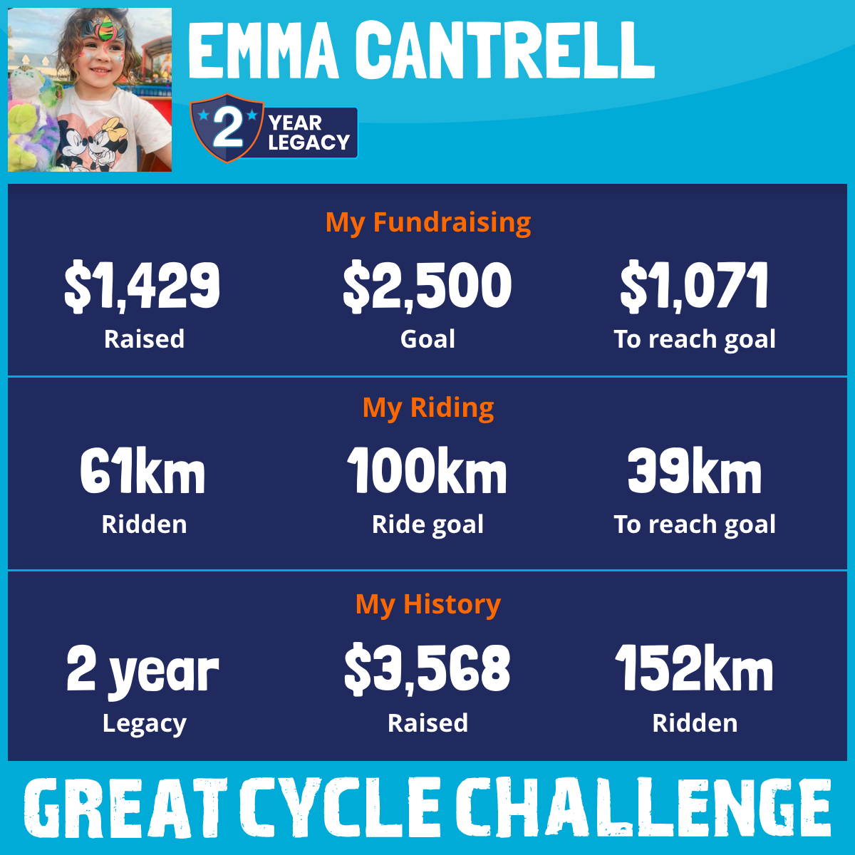 61 km Ridden$1,429 Raised2026