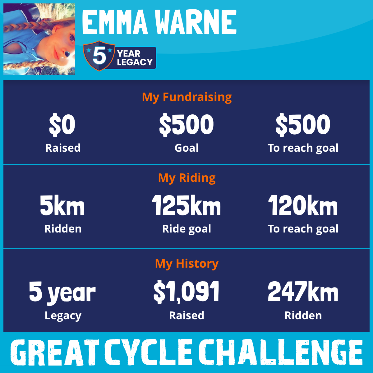 And so I am riding and raising funds to support the Children's Medical Research Institute to continue their work into the prevention, diagnosis, treatment and finding a cure for childhood cancer.