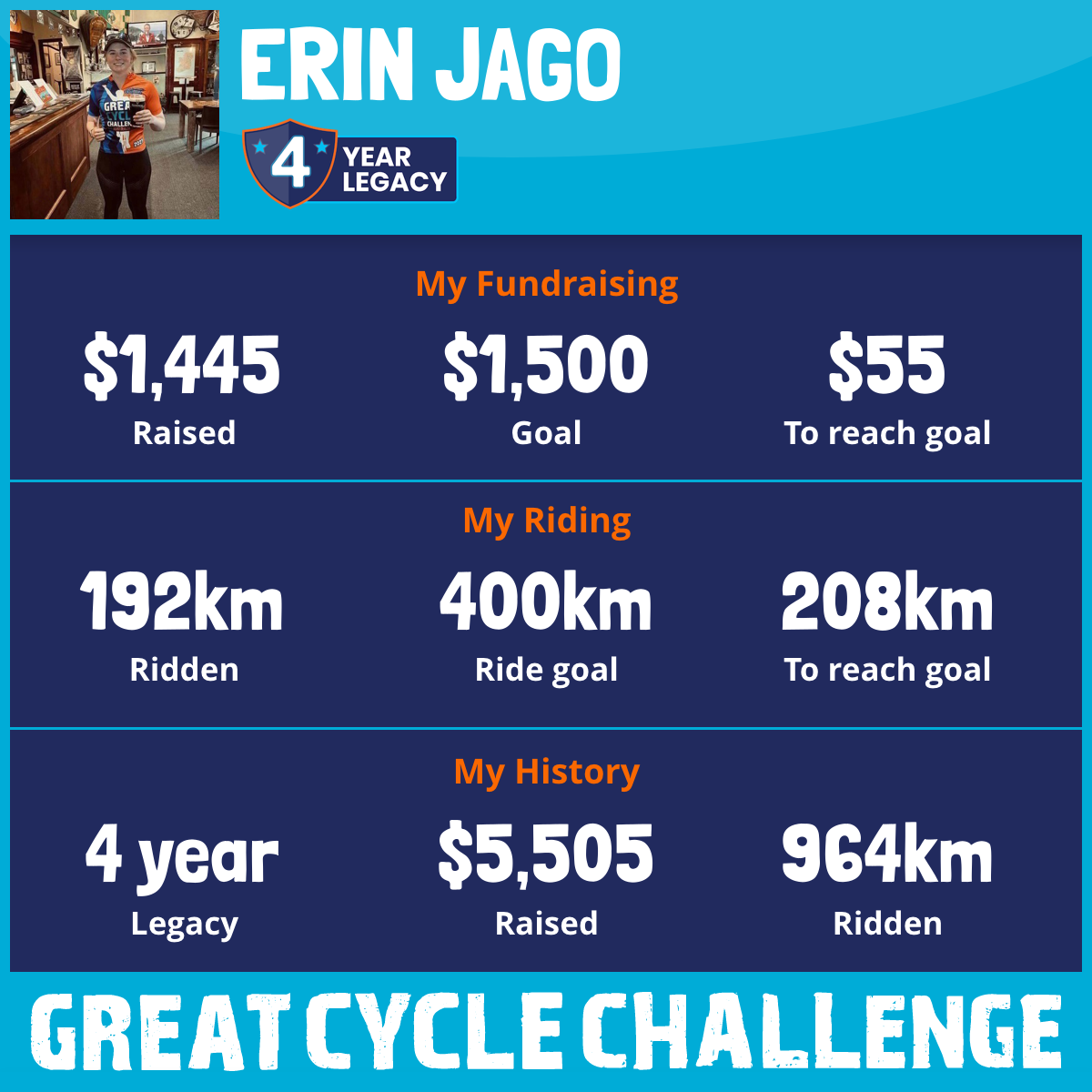192 km Ridden$1,445 Raised2025