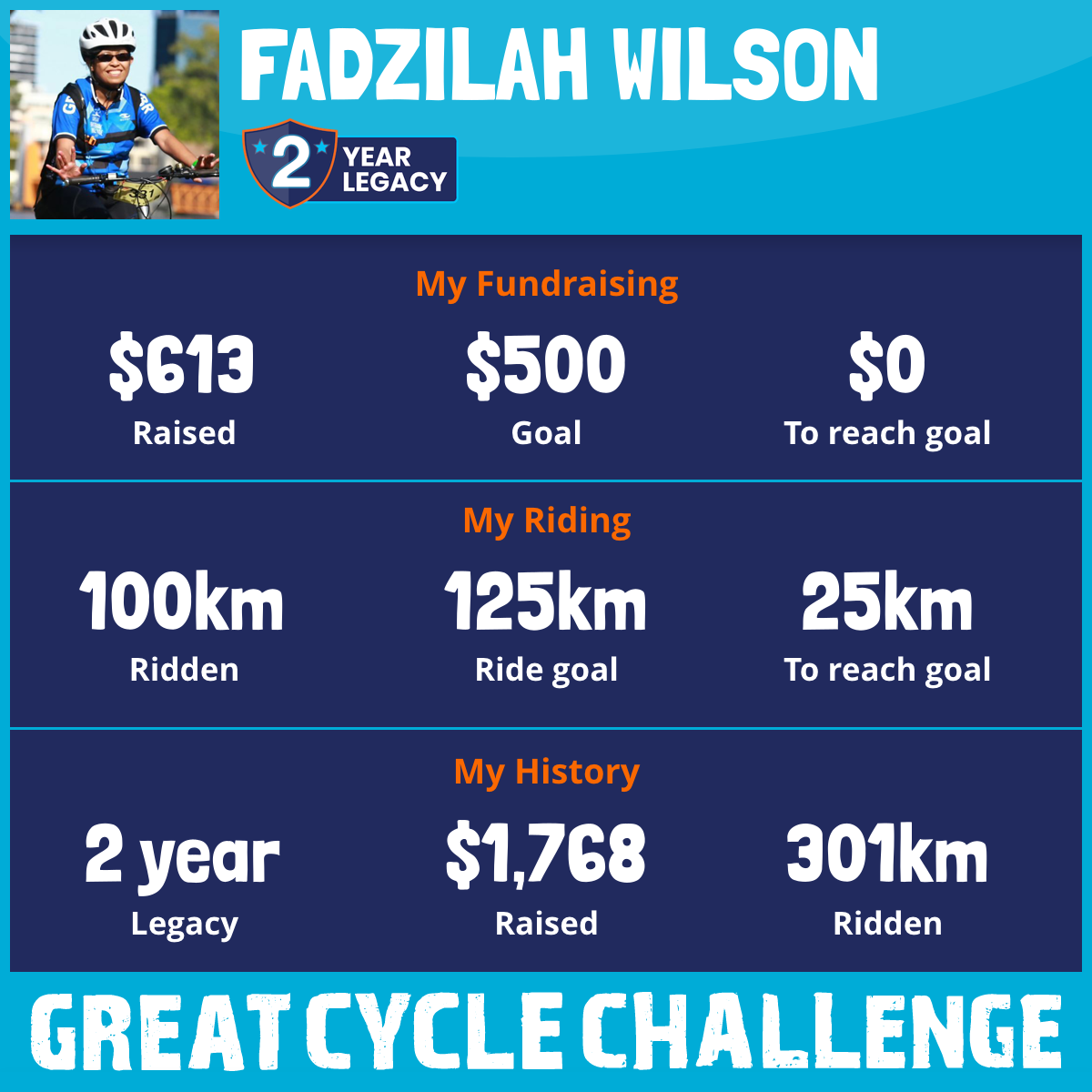 100 km Ridden$613 Raised2026