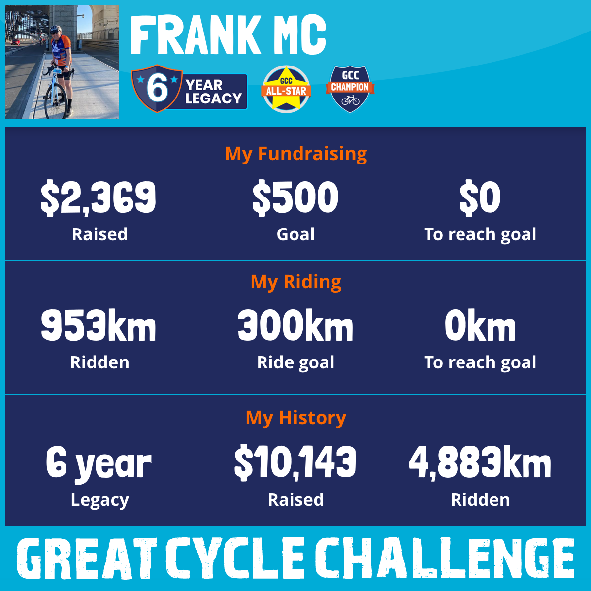And so I am riding and raising funds to support the Children's Medical Research Institute to continue their work into the prevention, diagnosis, treatment and finding a cure for childhood cancer.