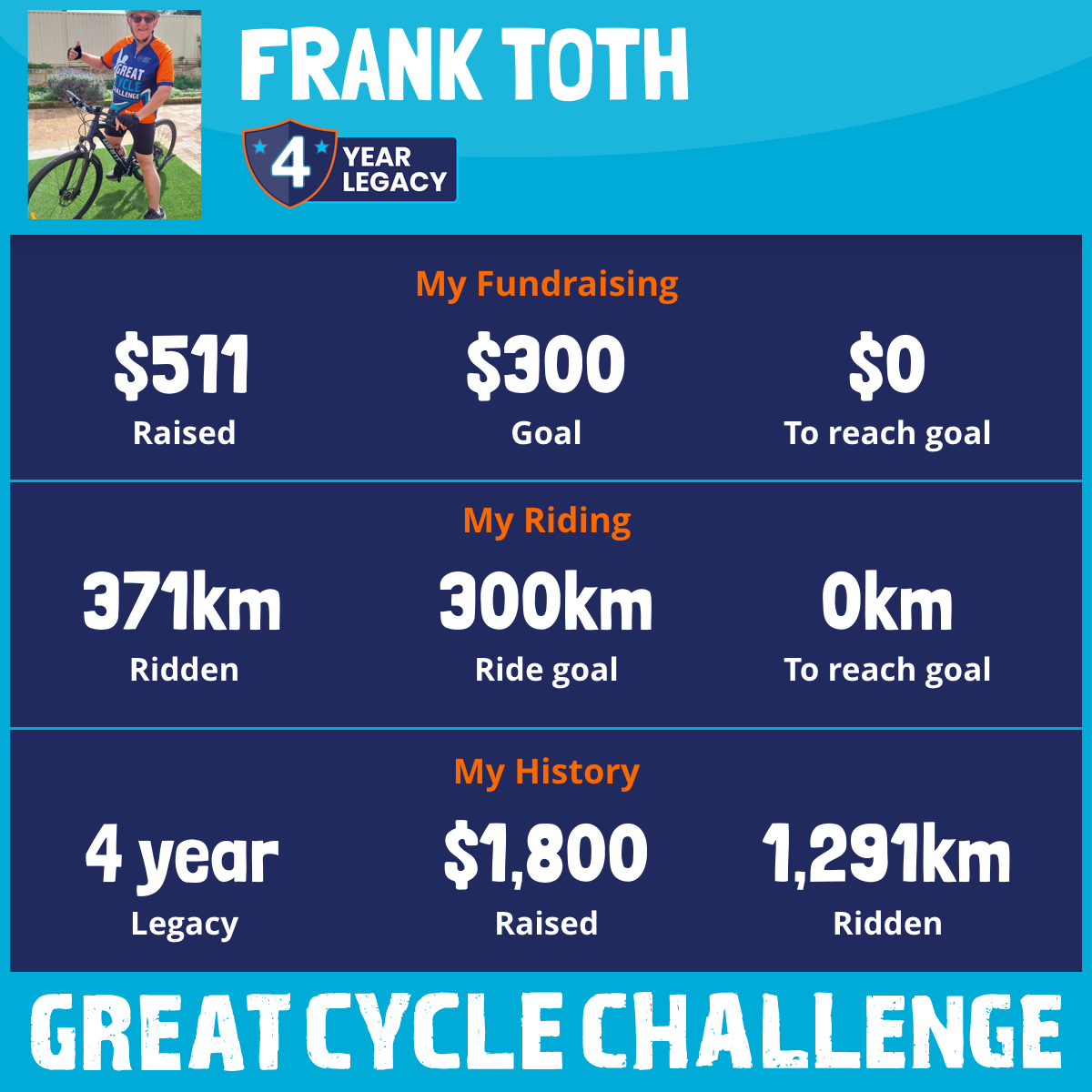 371 km Ridden$511 Raised2025