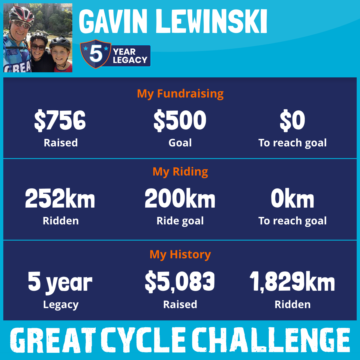 Big shout to team Lewinski for their support in smashing out goals as team Lewinski (plus individual), especially Bansky who now rides to school everyday and raised some serious funds for a great cause.