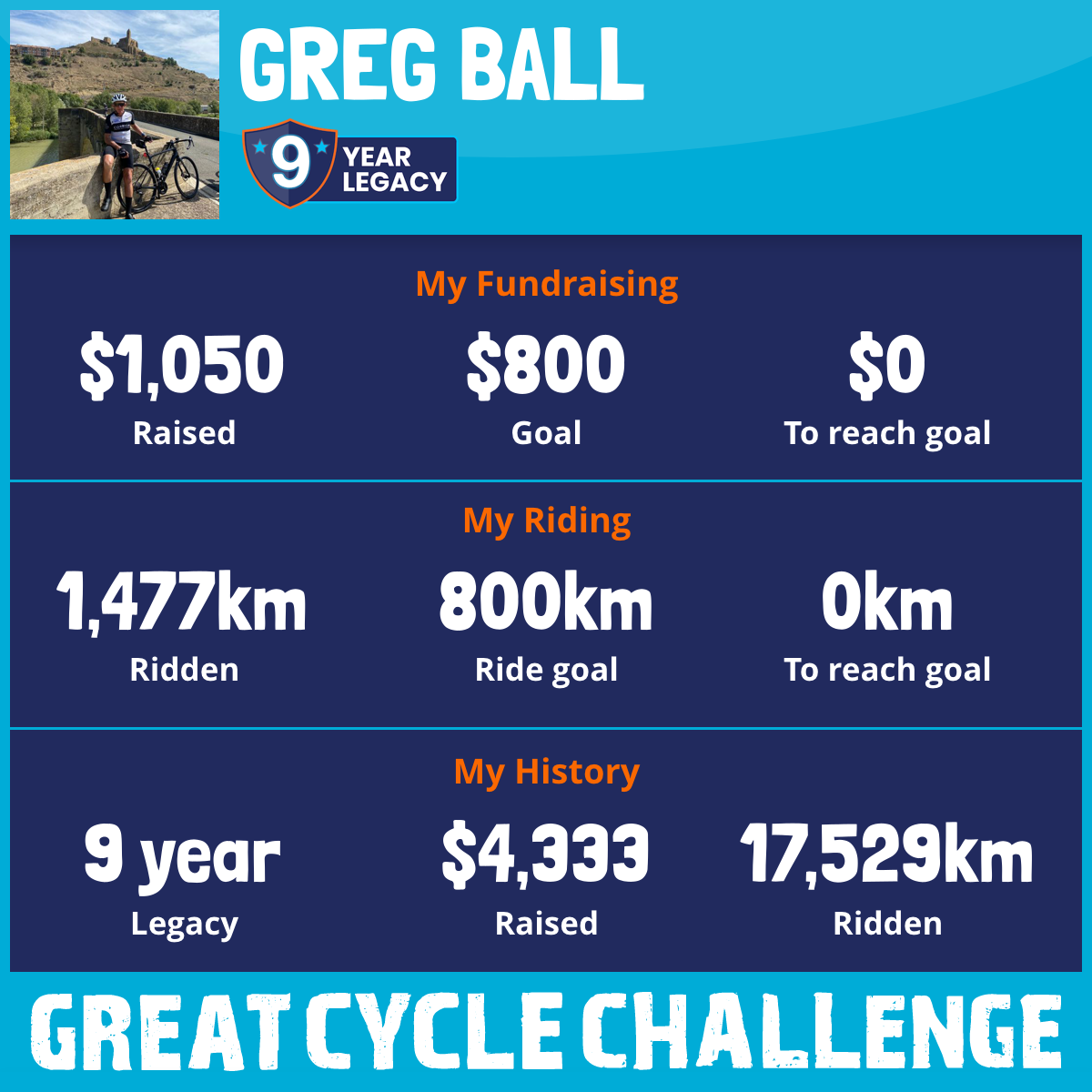 1,477 km Ridden$1,050 Raised2025