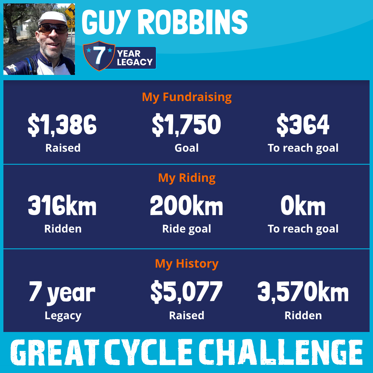 316 km Ridden$1,386 Raised2025