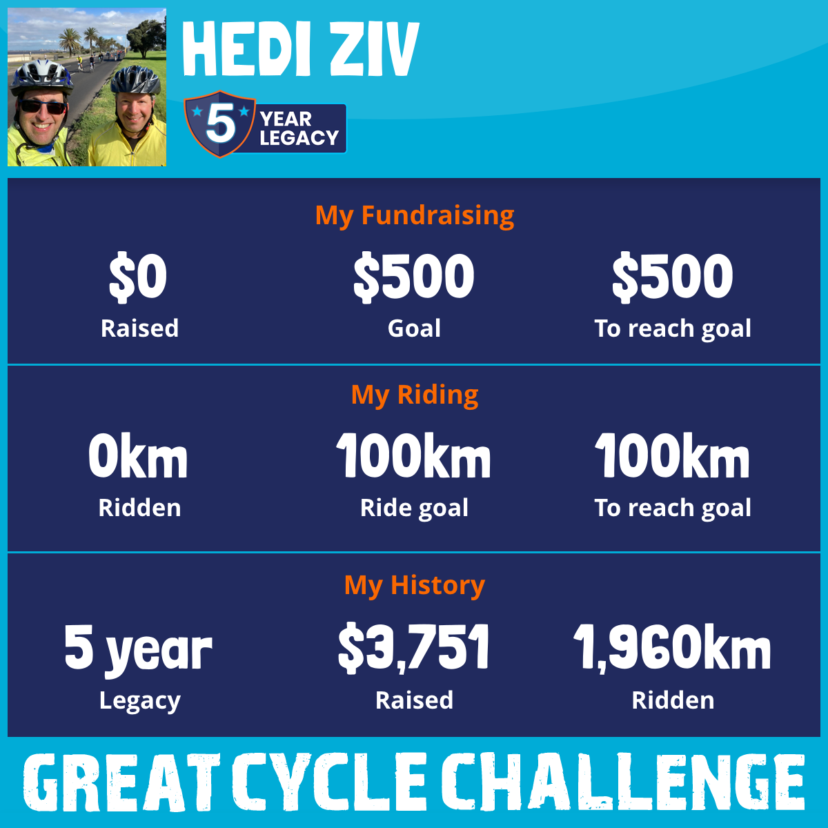 I am riding 100 km in memory of my dad, O Ziv. Please sponsor me and support my challenge to fight kids' cancer and save little lives.