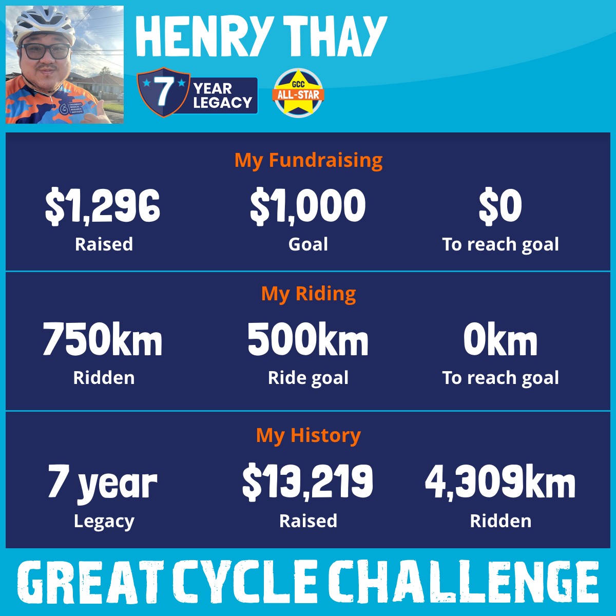 And so I am riding and raising funds to support the Children's Medical Research Institute to continue their work into the prevention, diagnosis, treatment and finding a cure for childhood cancer.