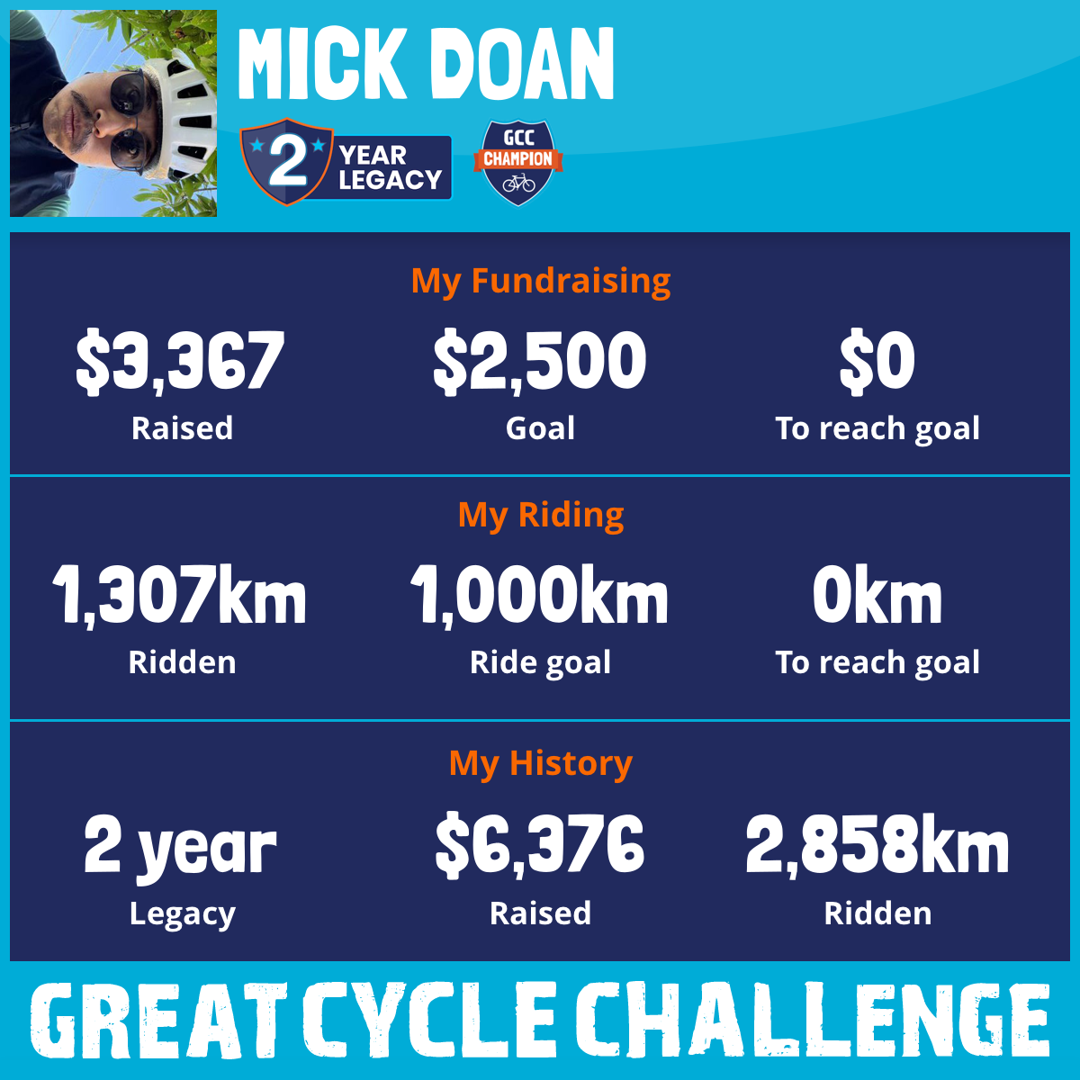 And so I am riding and raising funds to support the Children's Medical Research Institute to continue their work into the prevention, diagnosis, treatment and finding a cure for childhood cancer.