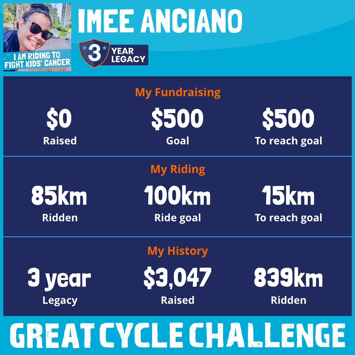 And so I am riding and raising funds to support the Children's Medical Research Institute to continue their work into the prevention, diagnosis, treatment and finding a cure for childhood cancer.