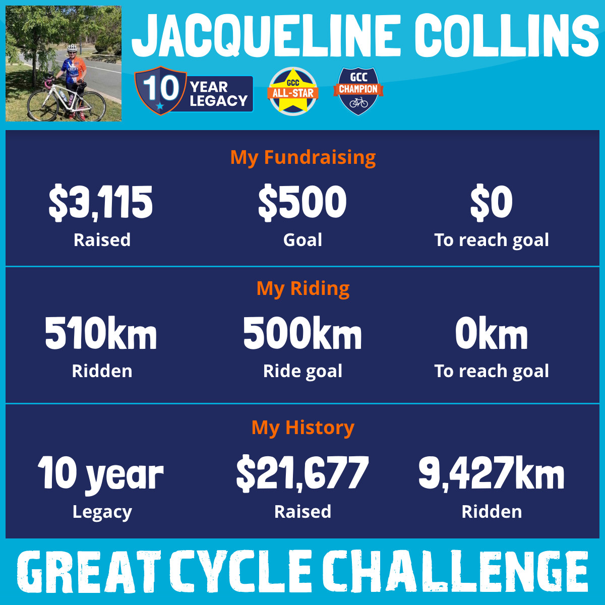 “Go you Jacqui,thank you so much for riding for this important cause !”