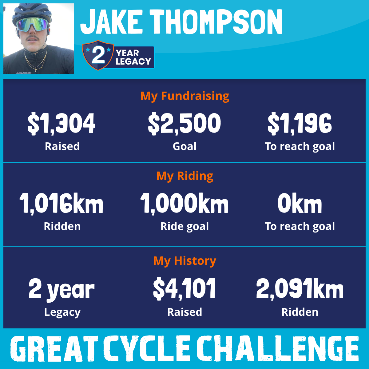 1,016 km Ridden$1,304 Raised2025